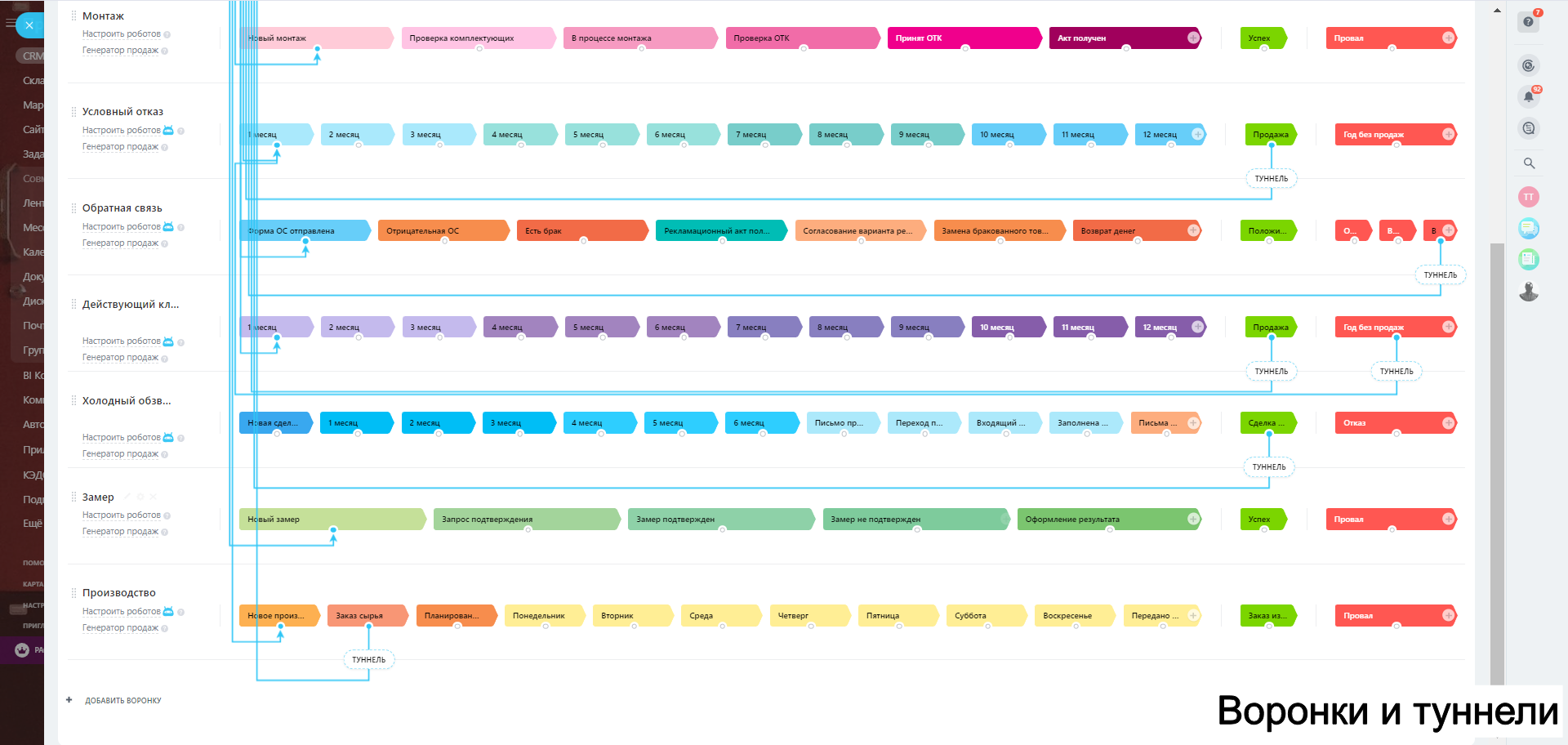 - все обращения попадают в одну воронку продаж со стандартными шагами;