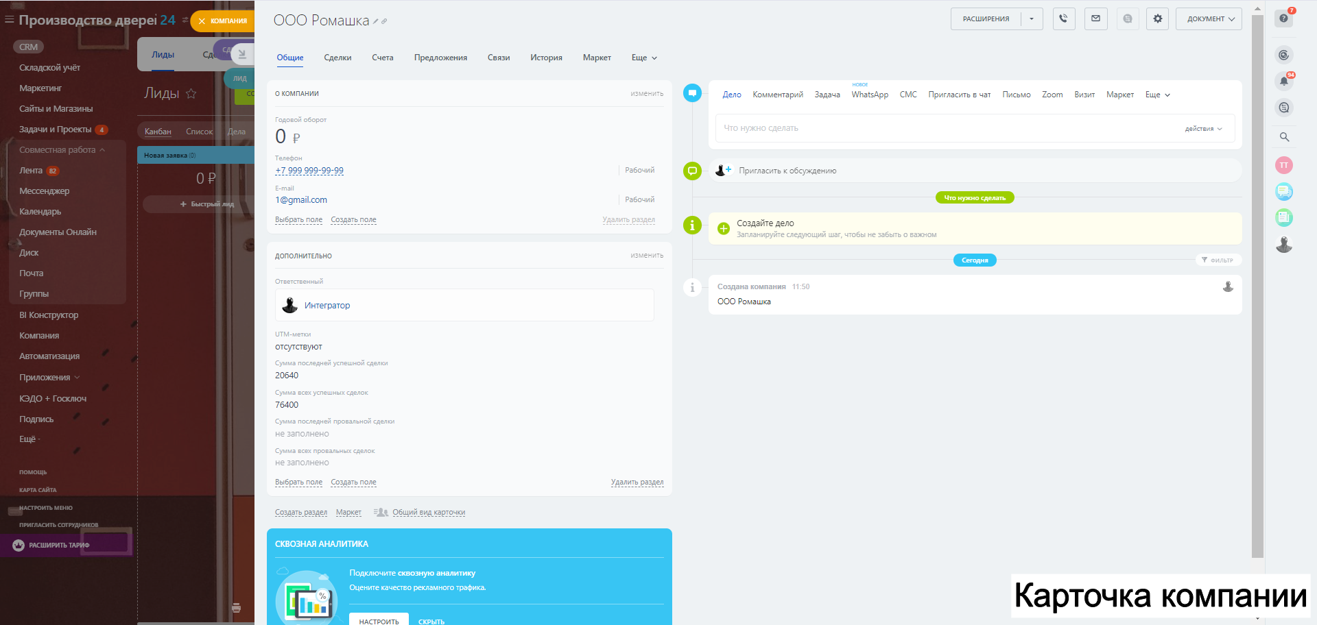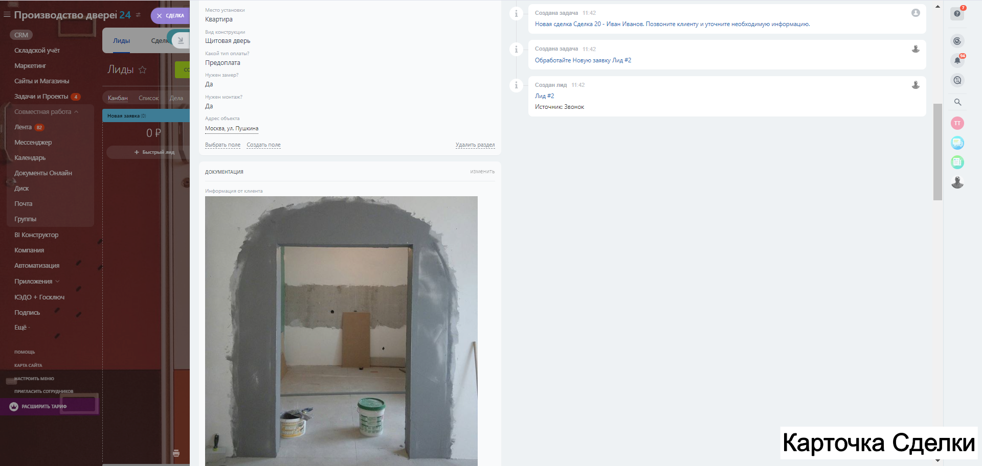 - готовую CRM под производство дверей