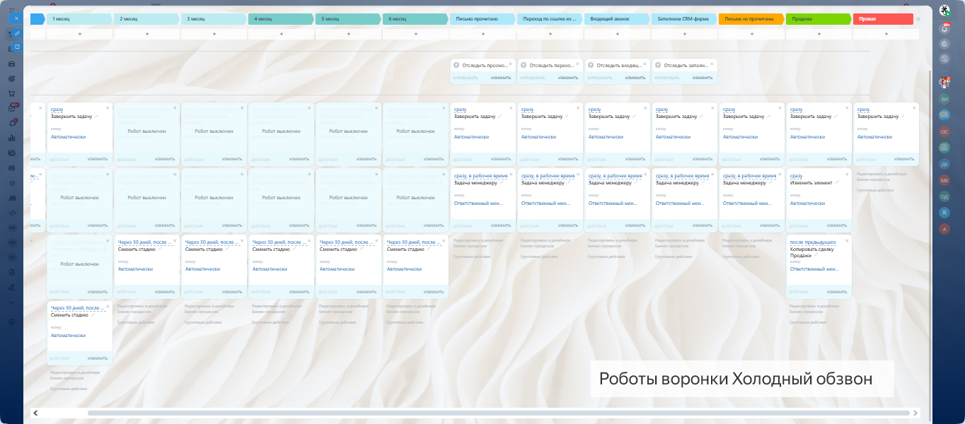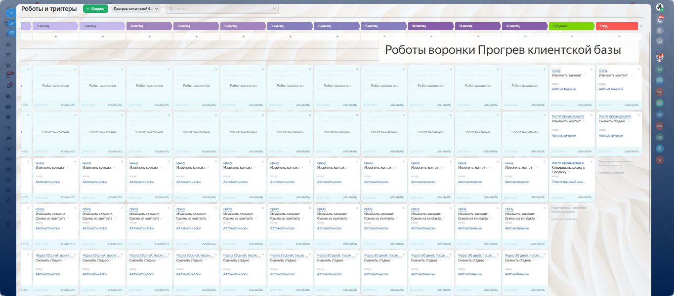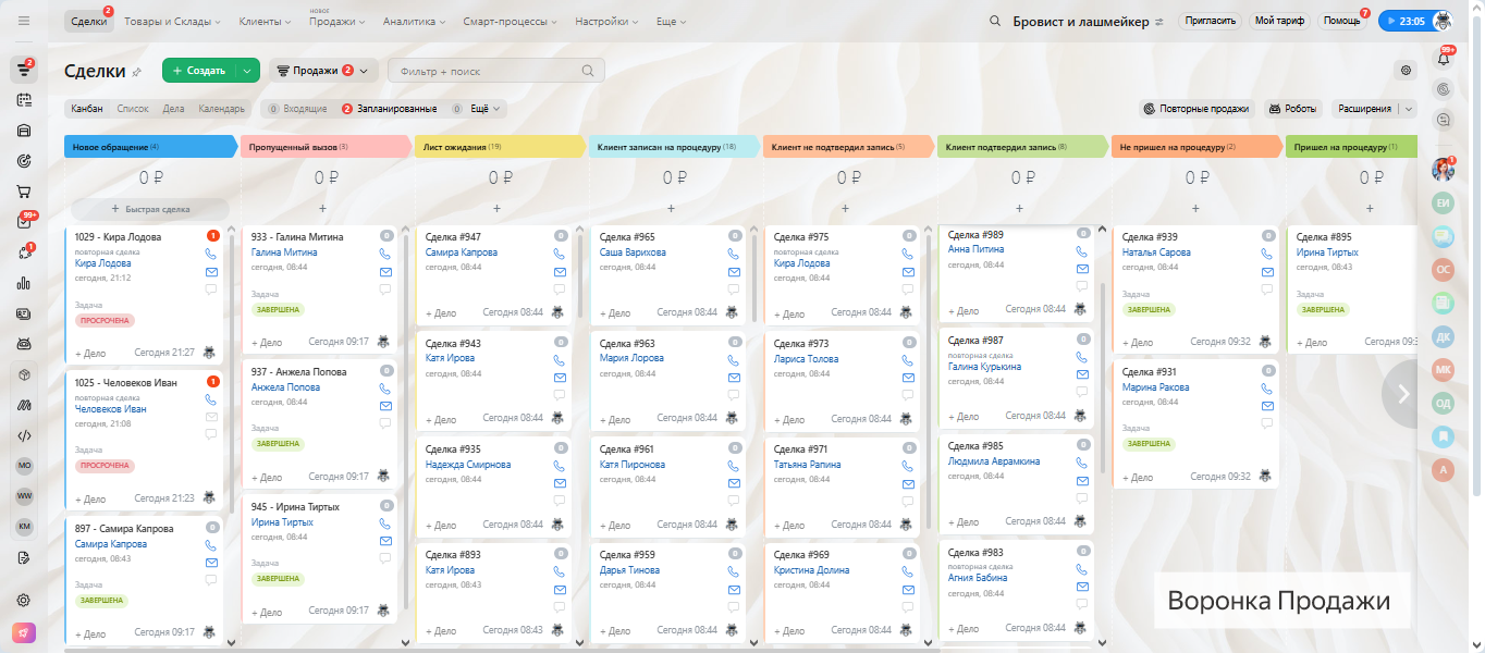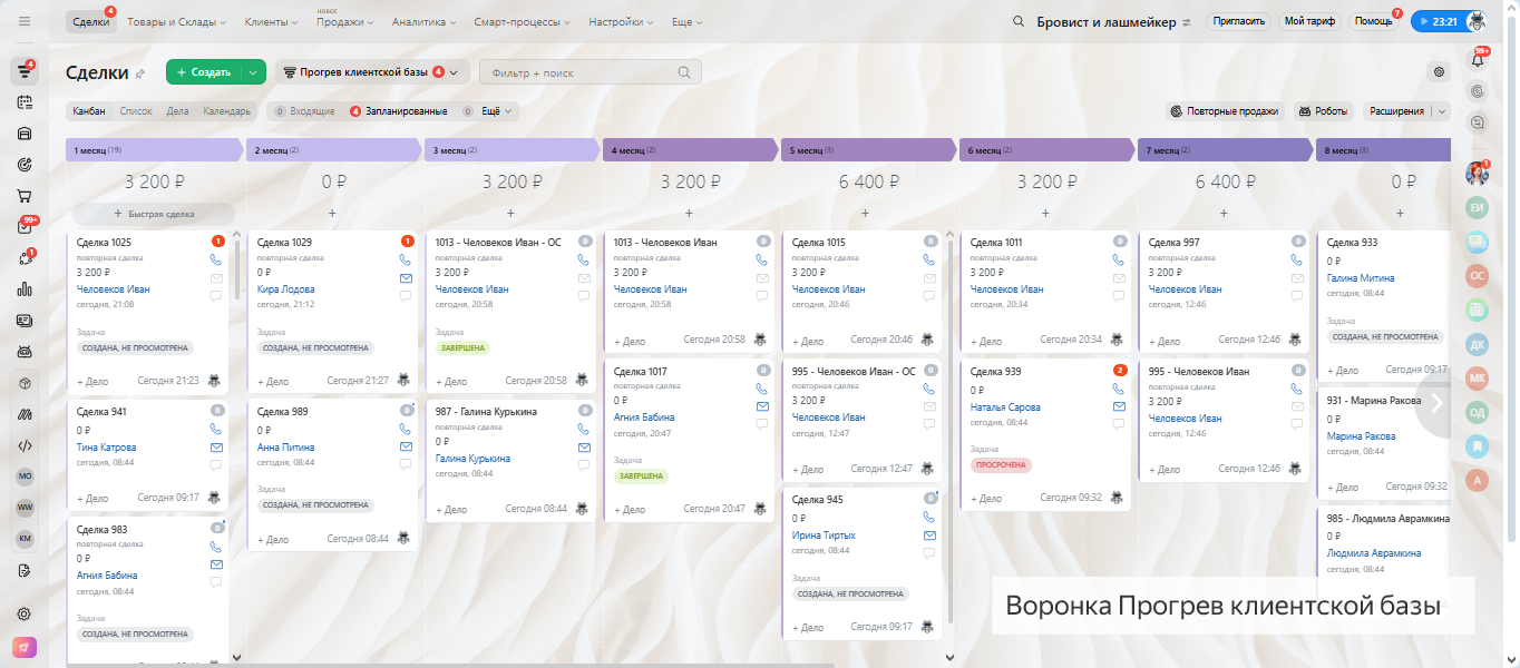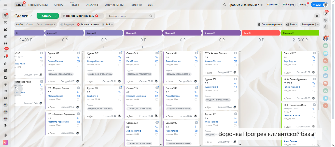 – все клиенты с успешных процедур попадают в «Прогрев базы» и регулярно получают предложения и напоминания;